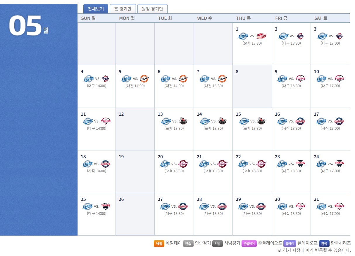 ⚾ 삼성 라이온즈 5월 주요 경기 일정